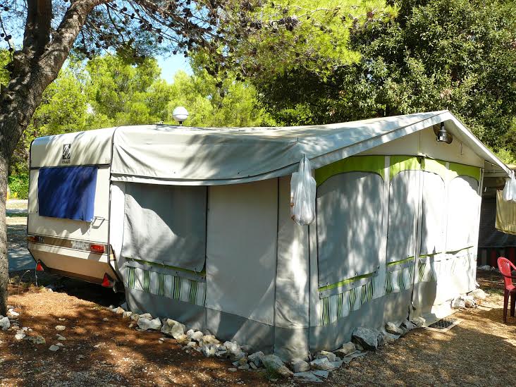 Lakókocsis nyaralás Horvátországban. Kempingbe telepített klímás lakókocsik a Trogiri Riviérán kedvező áron kiadók.
