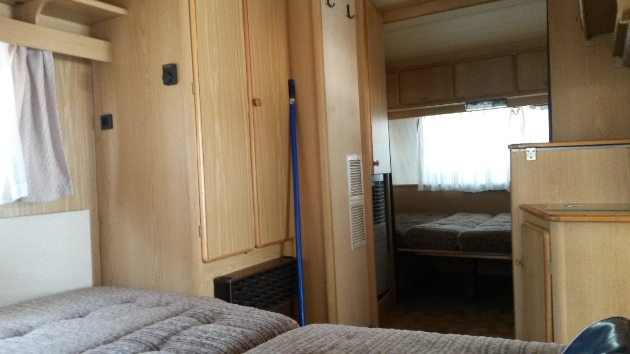 • komforttal felszerelt lakókocsi, elektromos főző – melegítő, hűtőszekrény