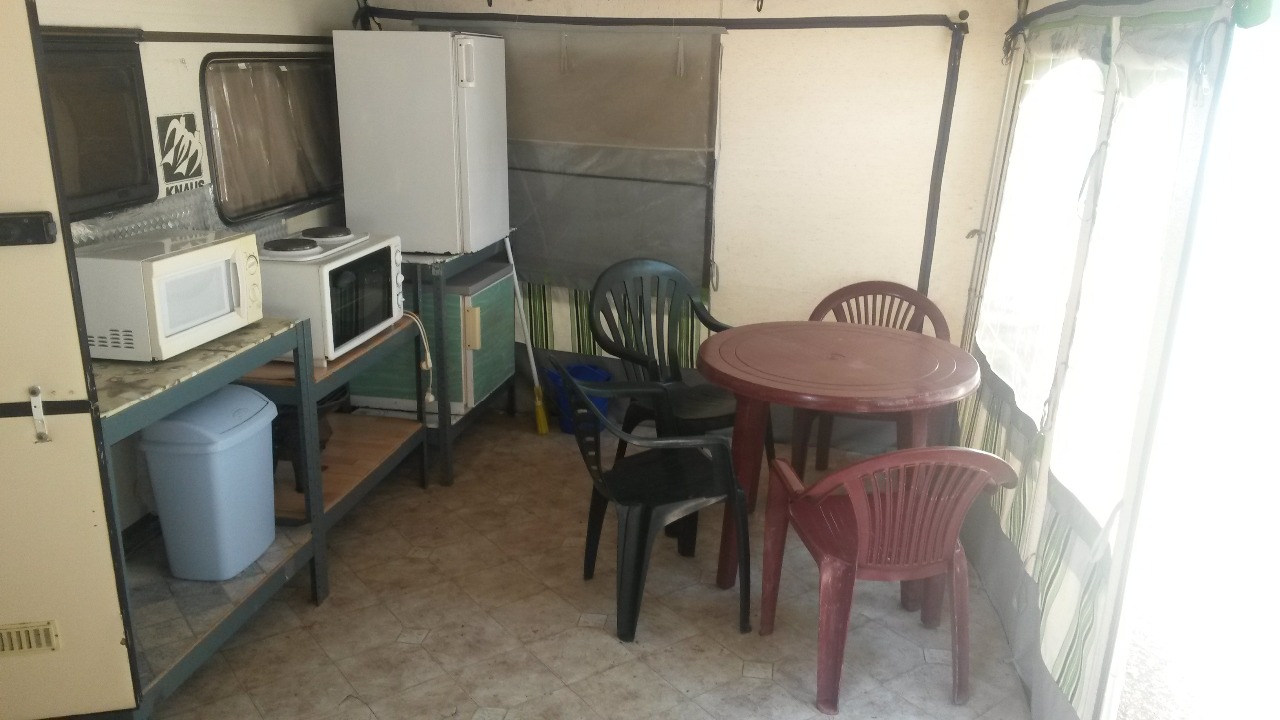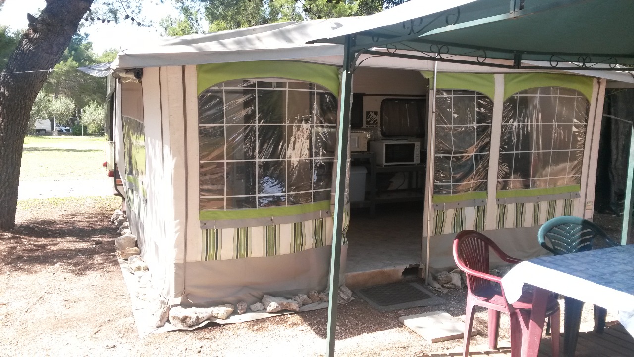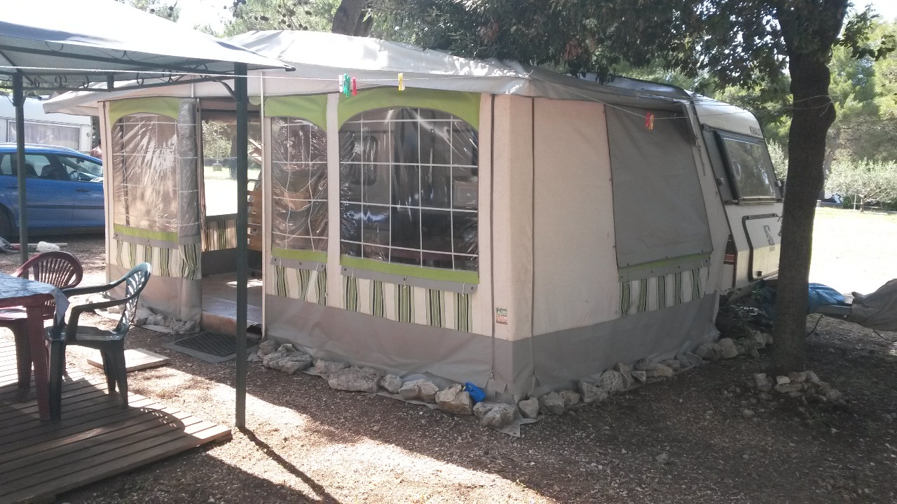 • minden lakókocsihoz tartozik egy elősátor amely zárt szilárd aljzatú, melyben